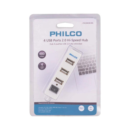 Mini Hub USB 2.0 Philco Blanco 4 Puertos